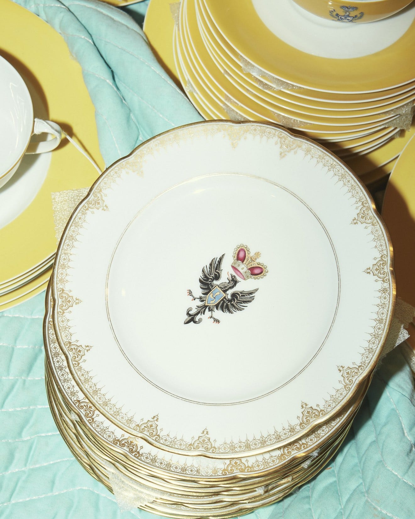 Plates – nonetheless – with the Radziwill family crest! A must for your china cabinet! Throw everything out, I will only eat off of Lee’s plates!