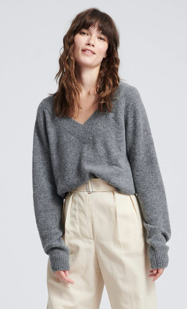 Forgo bangs and channel your inner french-girl chic with an oversized sustainably made, wool-cashmere deep v-neck instead! You can get this one (along with other styles from the brand for 20% off with code FALL20).